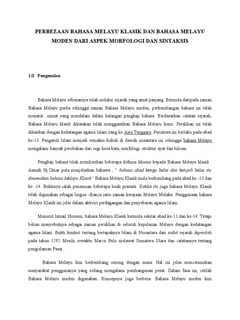 Perbezaan Bahasa Melayu Klasik Dan Moden Dari Aspek Morfologi Pdf